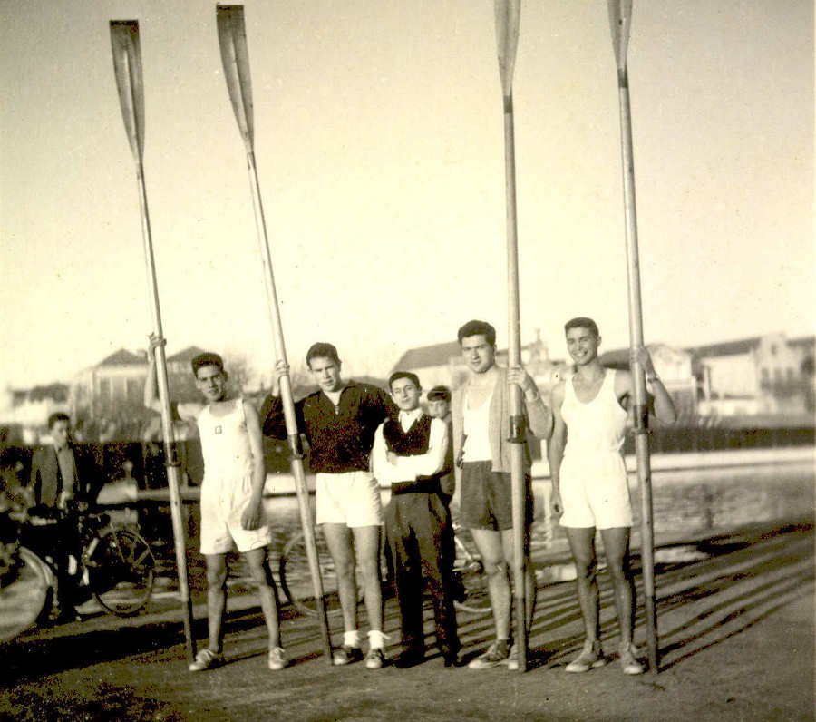 5 - Linha de Defesa da equipa de Andebol de 7 do Liceu. - Ver NOMES   6 e 7 - Equipa de Andebol de 7 que, no Porto, venceu a equipa de Vila Real por 9-4. Foto 7x5 cm de Artur Seabra. - Ver NOMES   8 - Equipa de remo do Liceu de Aveiro. Foto 6x6 cm de Artur Seabra - Ver NOMES