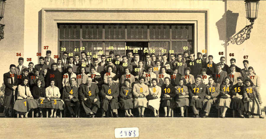 1 e 2 - Curso do 7º Ano em Jan. de 1958. Clicar na foto para ver os números. Botão de Retorno.
