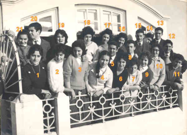 Identificação: 1.???; 2.Odete São Marcos; 3.Maria Teresa Coutinho; 4.João Júlio Barreto; 5.???; 6.???; 7.???; 8.???; 9.Célia Simões Matos; 10.Maria José Realeza; 11.???; 12.???; 13.Ricardo Jorge Ventura da Cruz; 14.António Capela Ferreira Gordo; 15.Maria Teresa Delgado; 16.Maria Júlia Malaquias; 17.???; 18.Lélia (?); 19.Maria de Fátima Mendes; 20.Ana Maria Lopes; 21.???; 22.Áurea; 23.???; 24.Ângelo Patacão; 25.???;