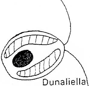 A única alga que aguenta a forte salinidade dos cristalizadores é uma