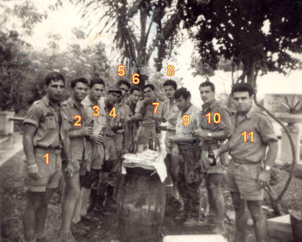 Nos anos de Telmo Alberto Pesqueira, nas nossa instalações do Luachimo - Dundo. Números: 1.???; 2.Manuel Mesquita Afonso; 3.Joaquim Pires de Sousa; 4.Joaquim da Conceição Bento; 5.???; 6.Ricardo Gonçalves Iglésias; 7.Furriel José Carlos Branco Salgueiro; 8.Baltazar Júlio Veloso Abreu; 9.Telmo Alberto Pesqueira; 10.???; 11.José Carlos Neves.