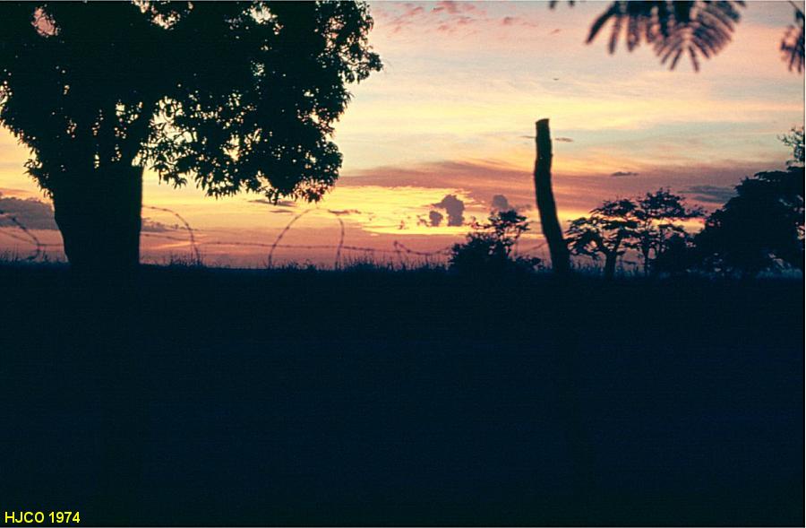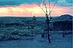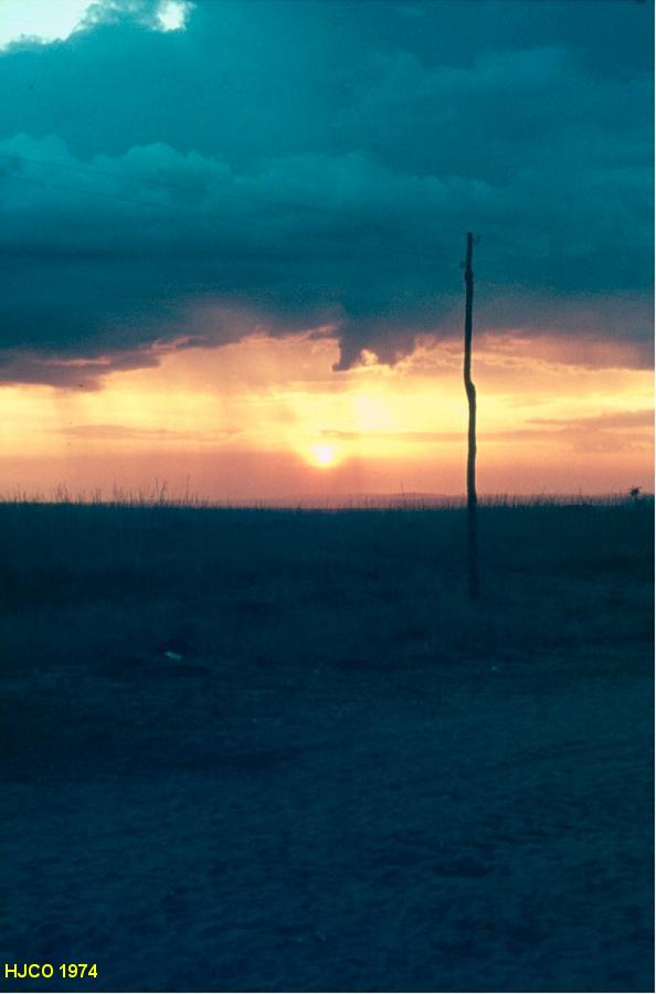 Aspectos de Marimba ao pôr do sol. Ao longe, vęem-se as cordas de chuva que se aproximam..