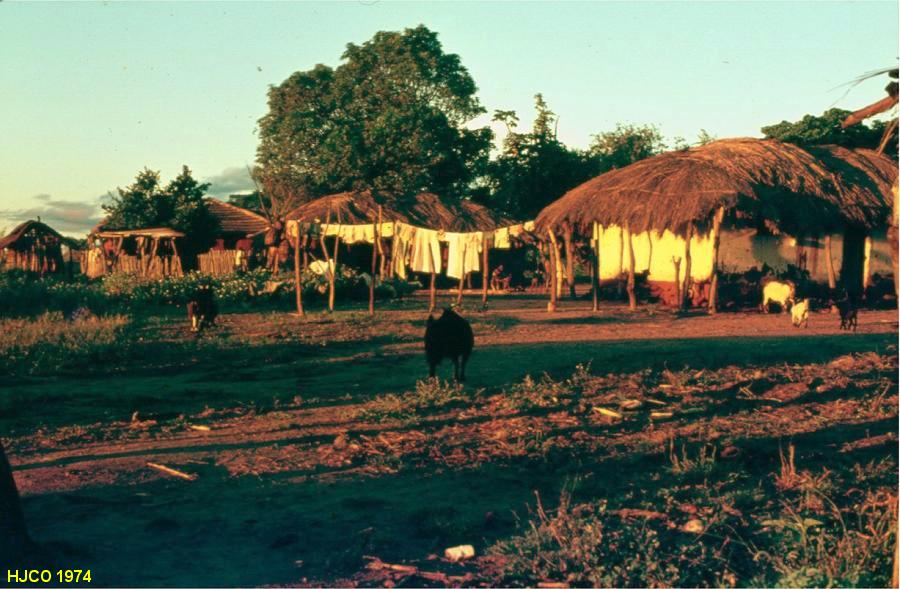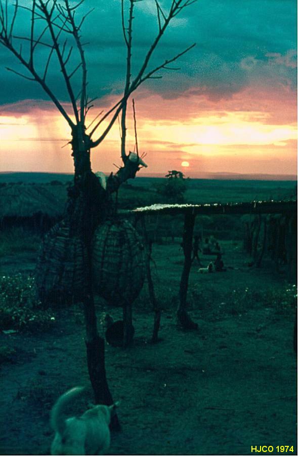 Aspectos da sanzala de Marimba ao pôr do sol.