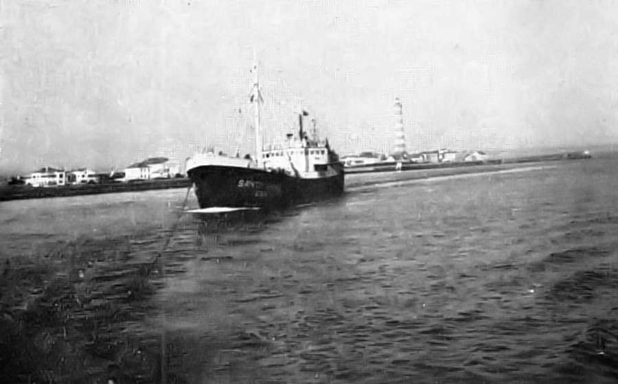 Entretanto, a nossa equipa de reportagem não tinha mãos a medir, tantos os pormenores que importava focar. A barra parecia aproximar-se de nós, liberta já da bruma matinal e com o sol, em esplêndido contra-luz, a realçar o farol e toda a paisagem ribeirinha. À entrada da barra avistavam-se algumas pequenas embarcações que regressavam da sua faina no mar e, nas penedias, viam-se já pescadores desportivos a tentarem a sua sorte. Sobre o paredão, alguns familiares dos tripulantes do «SANTO ANDRÉ», poucos, dada a hora matinal e por não se contar que o barco entrasse tão cedo, acenavam com lenços brancos, no que eram correspondidos de bordo.