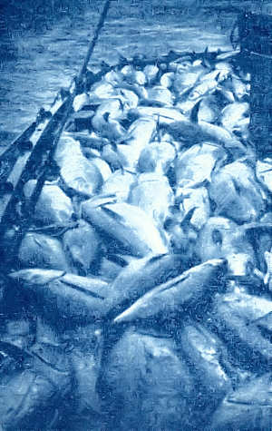 Ainda se vê passar, calmo, grave, no seu nadar gracioso, o terrível tubarão; de repente, é a debandada, e a procura doutro cardume começa.
