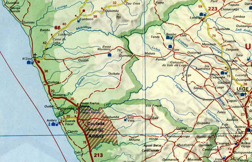 Mapa com na localização de Nova Caipemba, no sector de Uíje (Carmona)