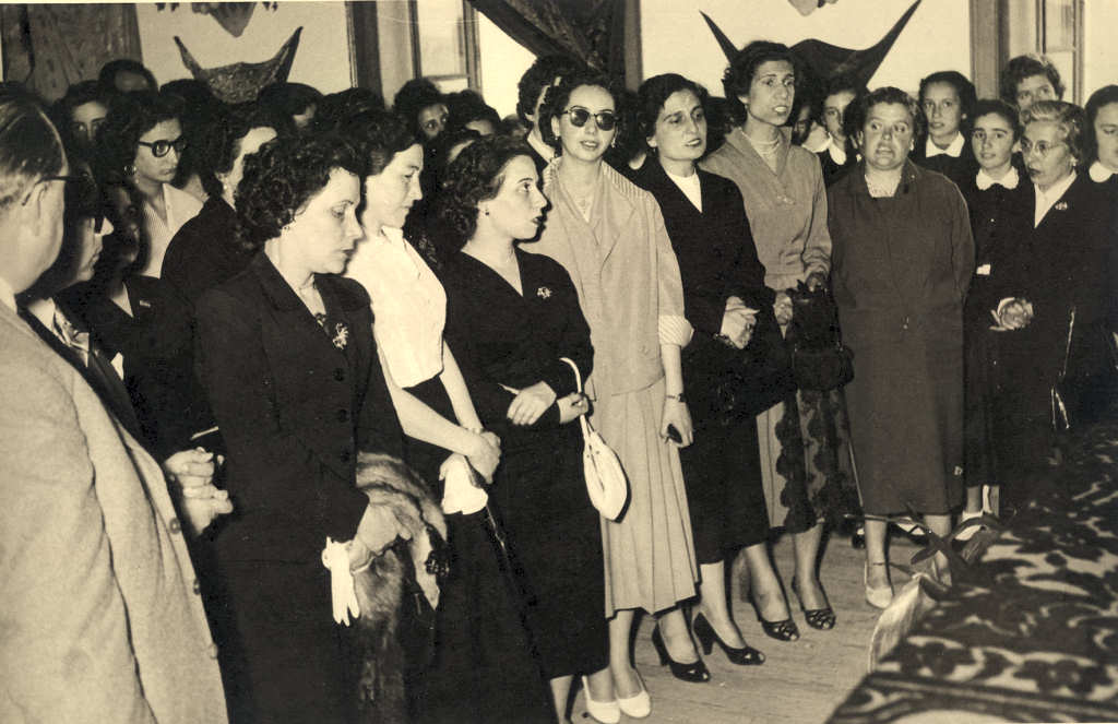 19.Do lado direito um grupo de alunas de bata preta que deverão estar a cantar o hino, destacando-se já em 2.º plano Edite Simões, Teresa Cunha, Odete Vital, Maria Helena Albernaz Otto, Manuela Saboga, Maria Alexandra Chaves, Maria Lopes...