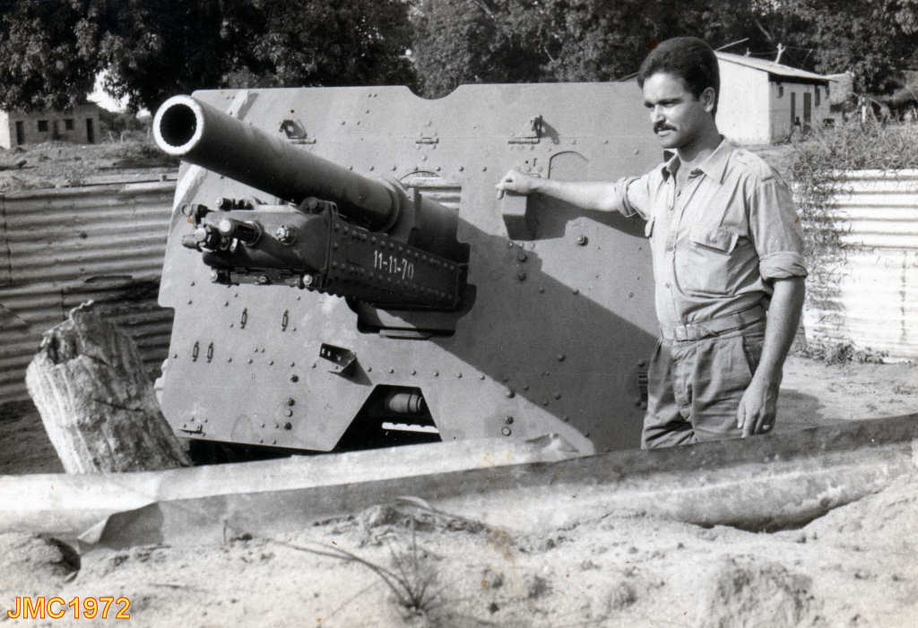 Osvaldo Simões Godinho da Companhia de Caçadores 3472 junto do monumento deixado pela C. Caç. 2703. Veio  a falecer em combate em Vila Paiva de Andrade a 11-08-1973.