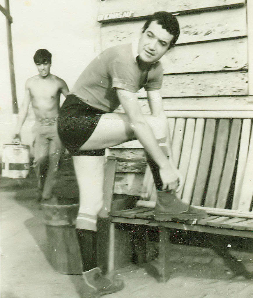 futebol. Ao fundo, vem o Tozé Santos com um latão
