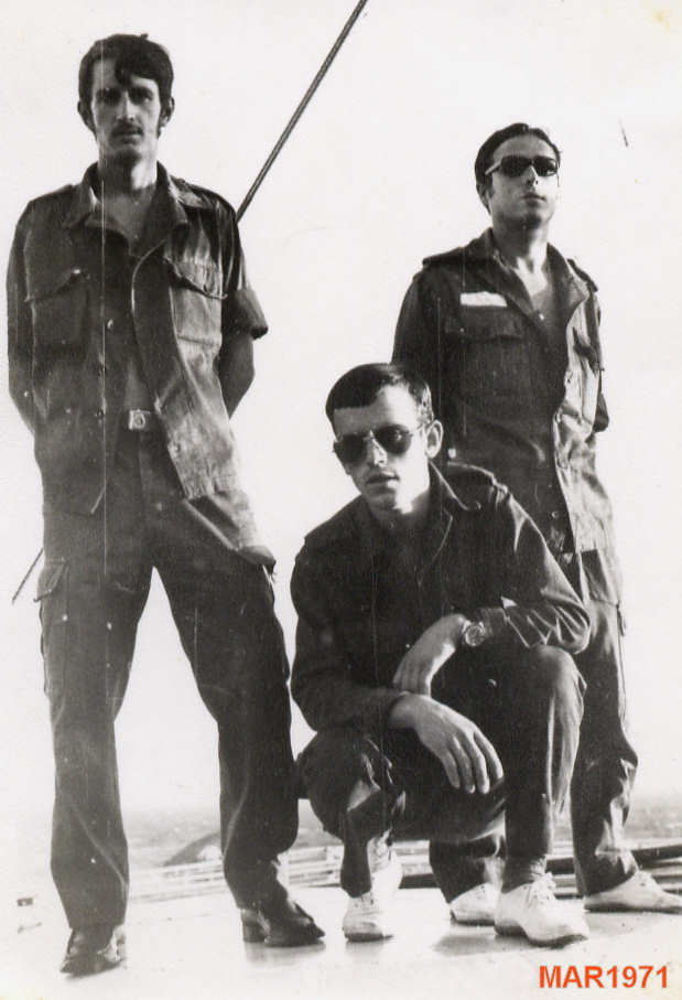 Elementos da Companhia de Caçadores 3387 na ré do navio Vera Cruz. Da esq. para a dtª: ???, ??? e ???.João Manuel Madalena Oliveira - Julho de 1971. Ficheiro: 041_VeraCruz.jpg
