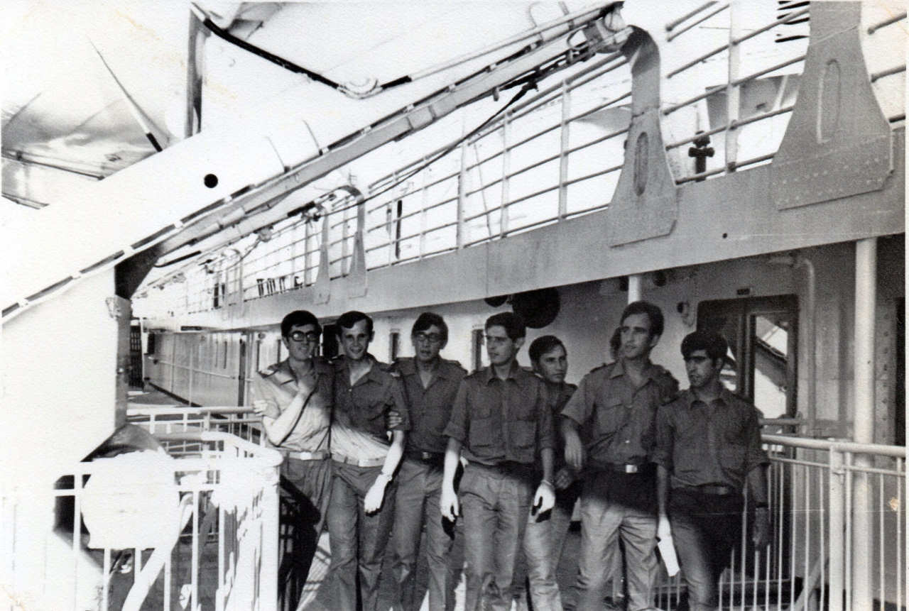 Elementos da Companhia de Caçadores 3437 do Batalhão de Caçadores 3855 no paquete Vera Cruz a caminho de Angola. Manuel Agonia Rodrigues - 1971. Ficheiro: 029_VeraCruz.jpg