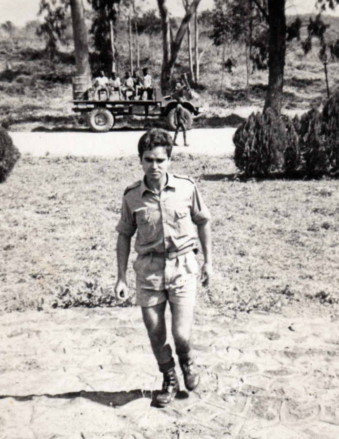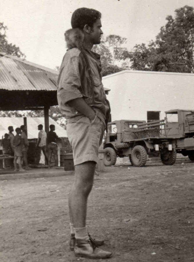 Joaquim Matos Cunha da C. Caç.3472 em Vila Paiva de Andrade, vendo-se ao findo elementos das instalações militares.