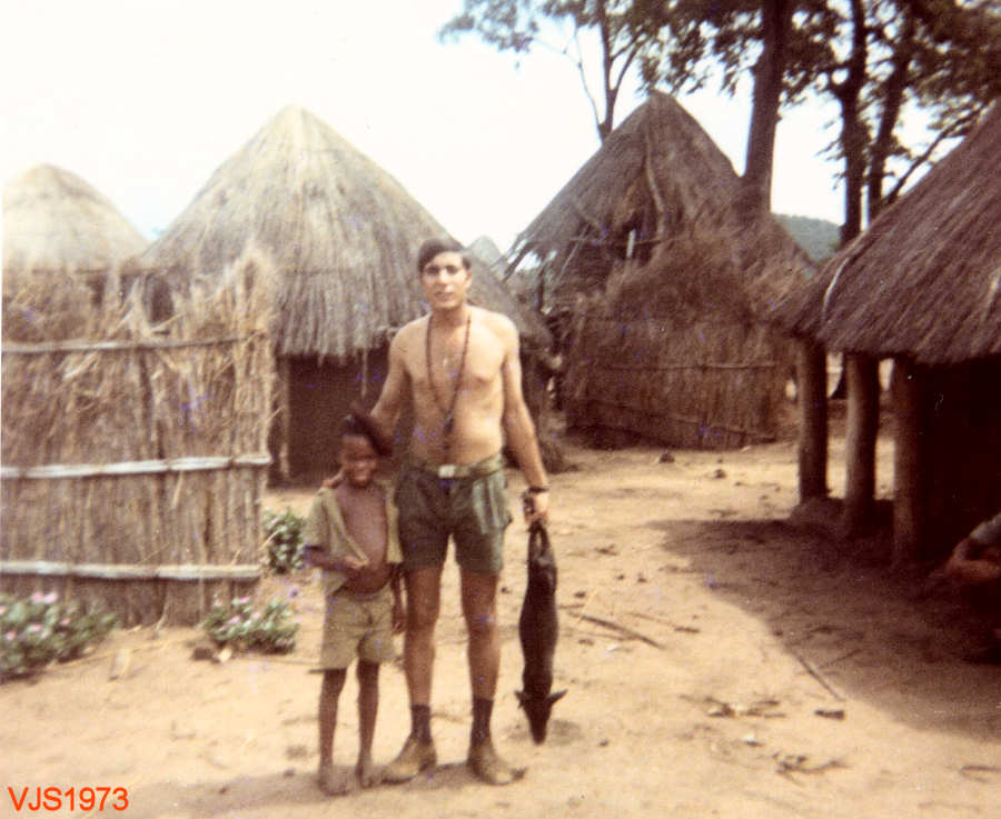 Brincando com os miúdos da aldeia.
