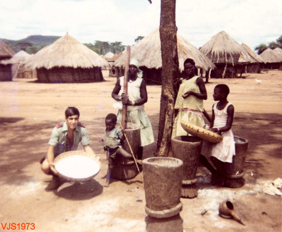 Junto de mulheres nativas que efectuavam a moagem do milho com o pilão.