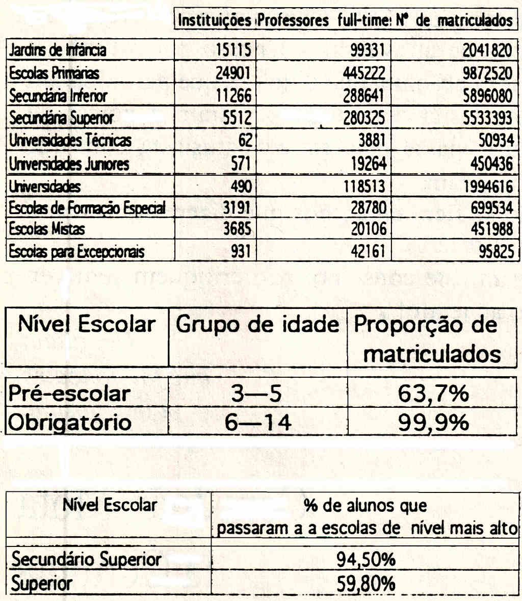 No quadro abaixo mostram-se alguns dados estatísticos sobre estabelecimentos de ensino, professores e alunos nos diversos níveis de ensino.