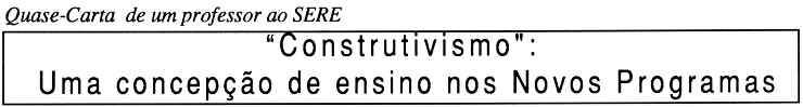 Expressões naqueles "Programas de Físico-Químicas" como sequências conceptuais", "moldes construtivistas", "mapa de conceitos", etc.; relembrar Bruner e a sua conhecida expressão "Aprender é aprender a aprender", um artigo de Novak em que escrevia "os mapas de conceitos constituem ferramenta útil à planificação do ensino e auxiliam os alunos a aprender a aprender", eram estimulantes.