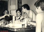 Momento de convívio, partilhando as encomendas enviadas pelos familiares. Da esquerda para a direita: Viegas, Matias, ??? e ???.