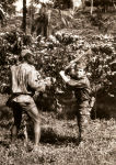 Na brincadeira com um amigo. Ao fundo um cafeeiro em flor.
