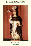 2.Representação de São Gonçalinho existente numa pastelaria de Aveiro. Versão A.R.   3.Imagem do andor de São Gonçalinho em 2022.   4. Imagem de São Gonçalinho num azulejo de autoria desconhecida, adquirido numa feira de velharias.