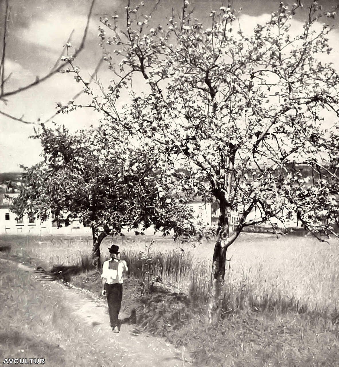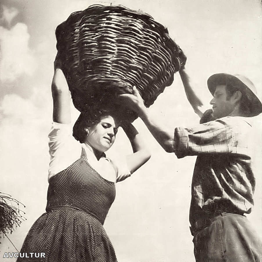 tipicamente aldeãs, o trabalho como motivo de alegria e descantes, quer