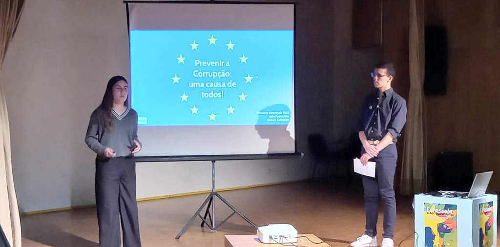 alunos João Pedro Silva e Mariana Laranjeiro apresentaram o seu