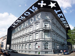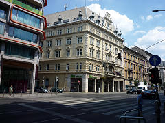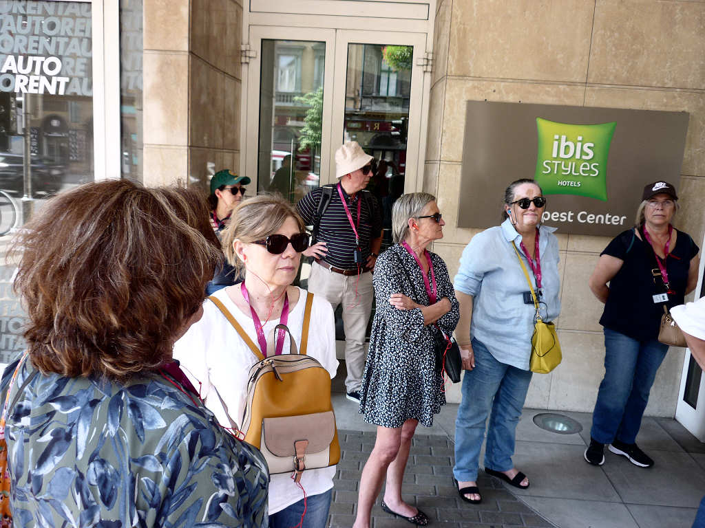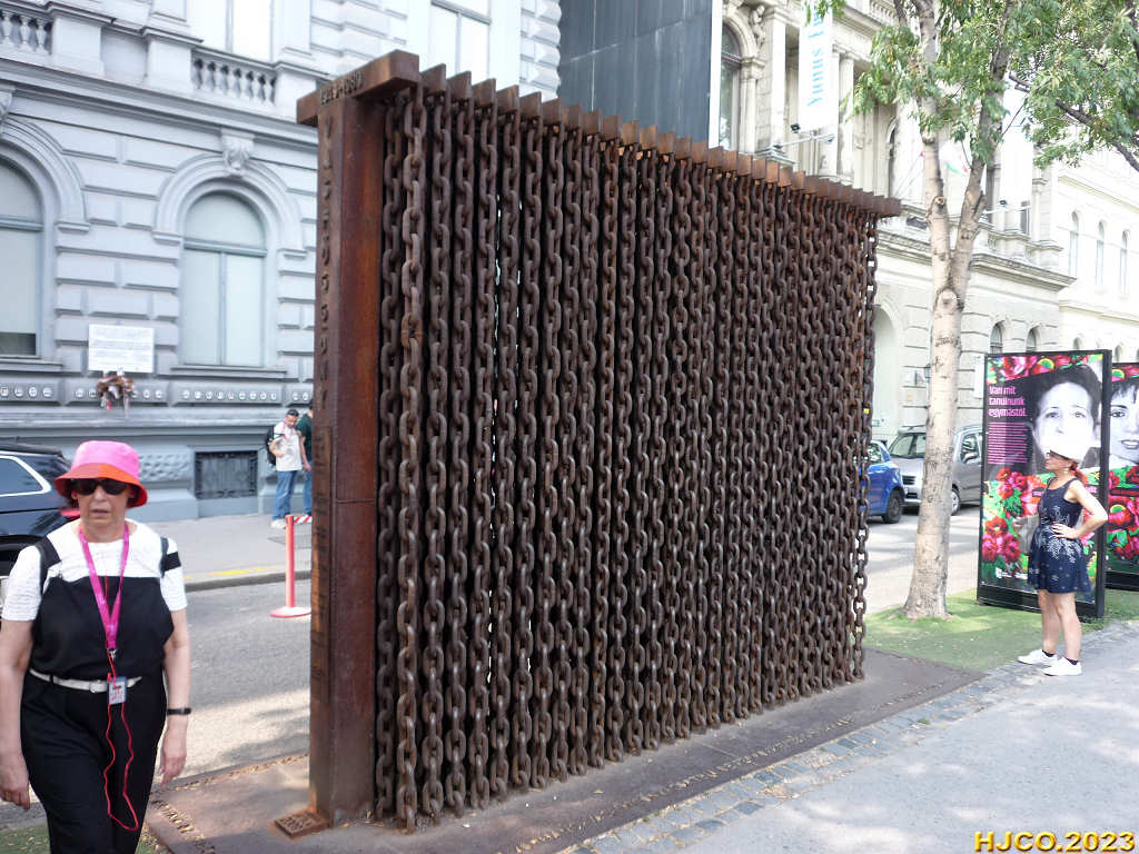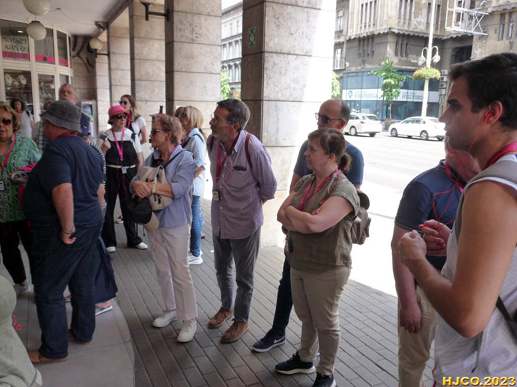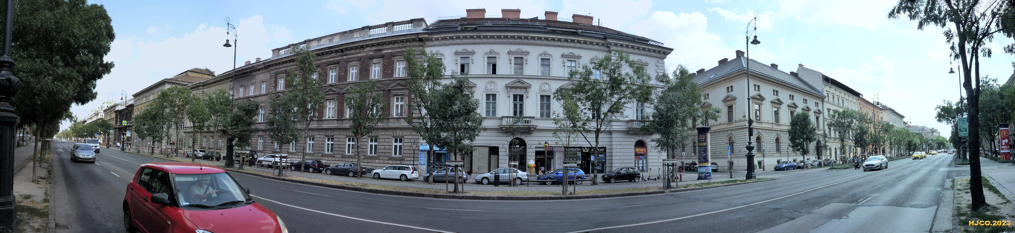33. Panorâmica de 180º da avenida Andrássy, onde se situa a Terror Haza (Casa do Terror).
