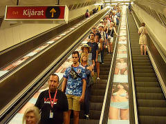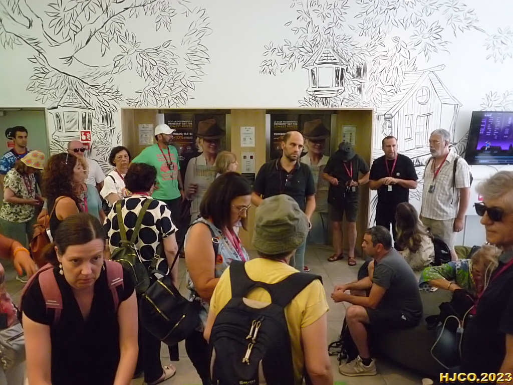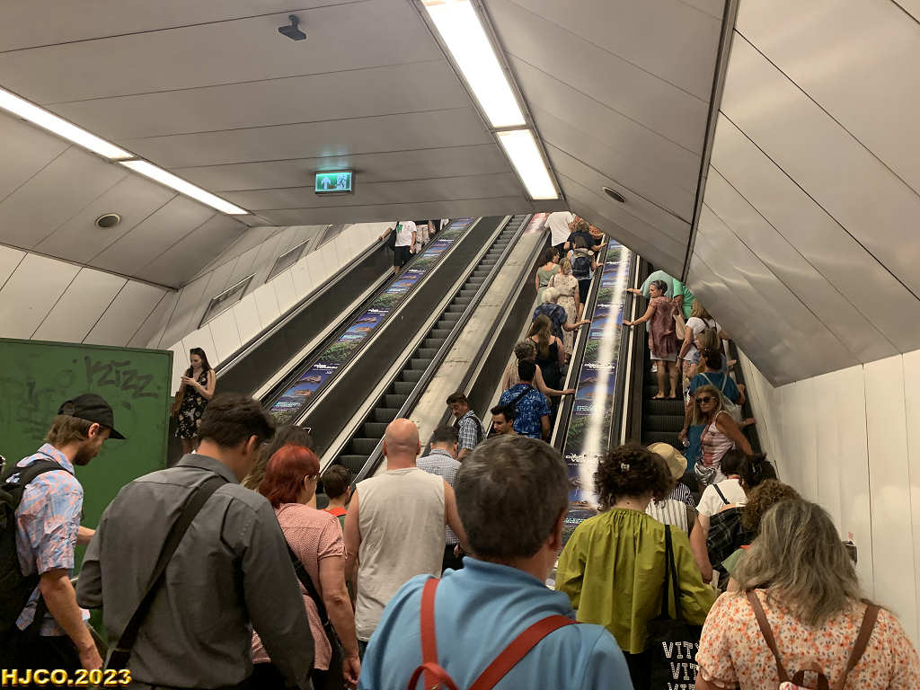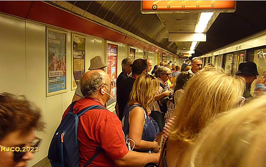 1. Ainda no hotel, recebendo informações. Canto superior direito, Ricardo e Jorge. (09:06:29)   2. Descendo para o metro. Imagens  do vídeo, excluído devido ao excessivo tamanho (280MB) . Em vez dele, algumas imagens, ao estilo da BD. (09:14:39)   3. Aguardando o metro. Substituímos as legendas pelo tempo fornecido pela nossa registadora de imagens.  (09:18:26)