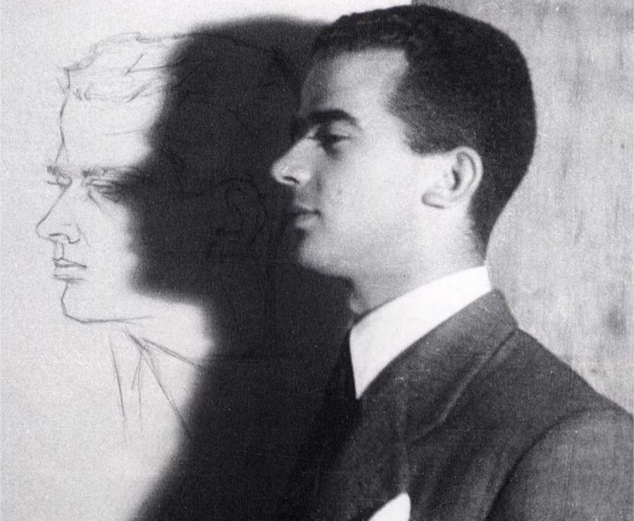 F. Távora e auto-retrato. Foto de Guilherme Ribeiro.