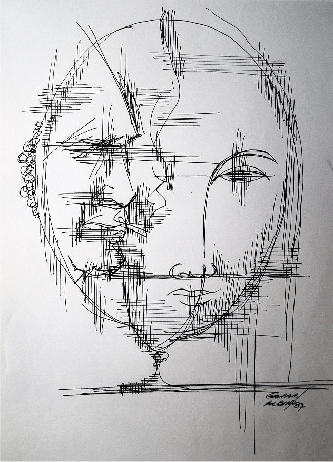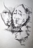 7 - Rostos I, 1987 - nanquim - 30x40 cm.