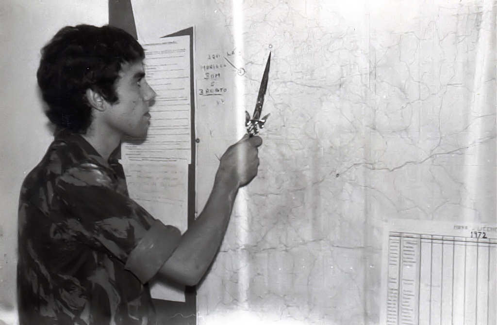 90. Na secretaria a consultar os mapas antes de uma saída.