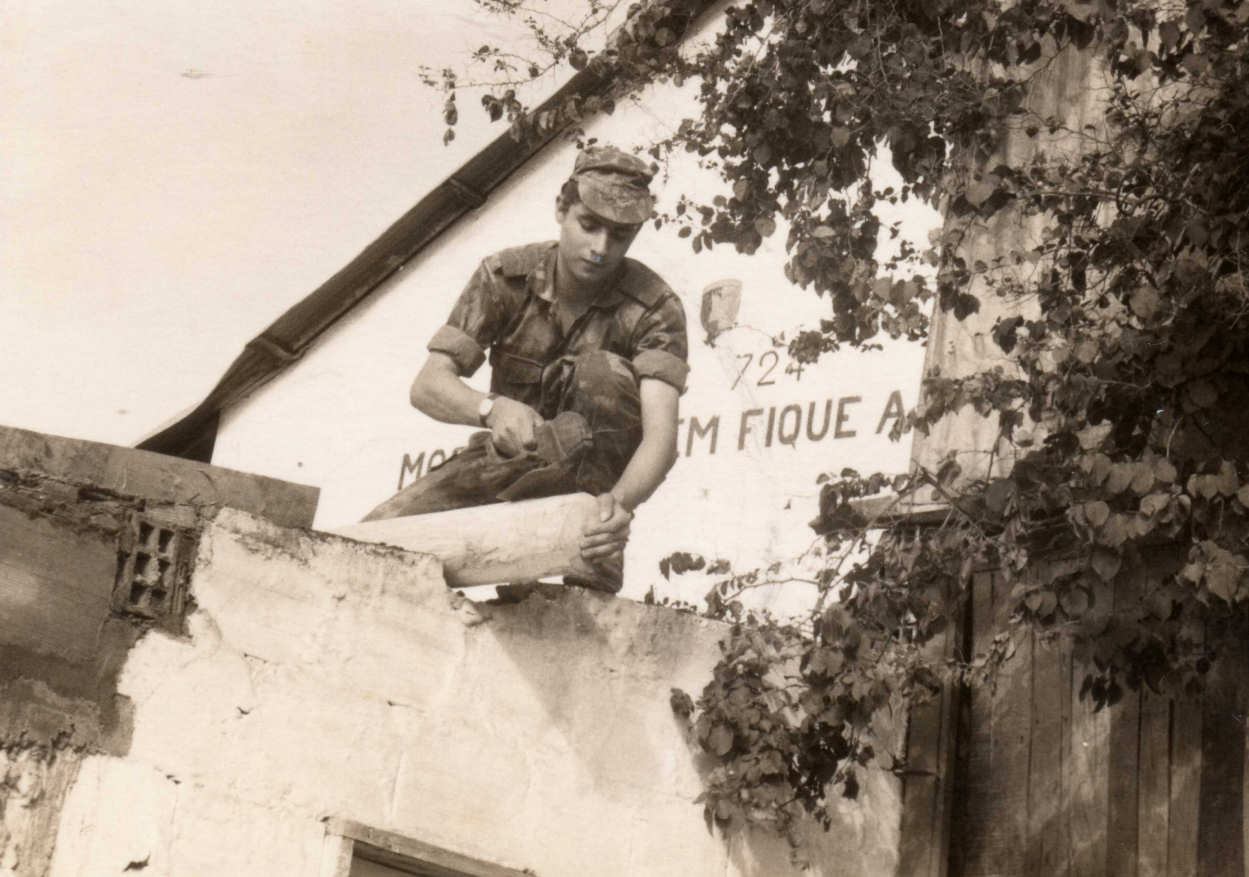 147. Quixico 1972 Adílio Galhano Eva, Recuperação de um telhado na messe dos sargentos, desaparecido num dia de temporal.