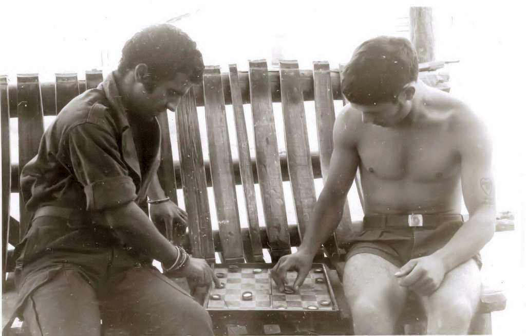 201.José Manuel F. Sousa e Joaquim M. Guerreiro da C. Caç.3387 durante um jogo de damas.