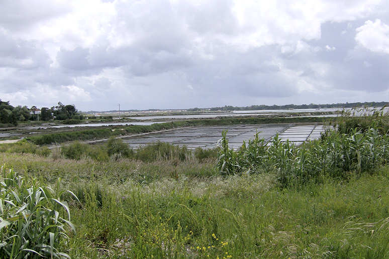 Olha-se para outro lado: tabuleiros de cristal, montinhos brancos expostos ao tempo, marinhas, marnotos e salineiras, a planície, a imensidade, e, no fundo, no extremo horizonte, a sombra quase imperceptível, a divina moldura dos pinheirais!