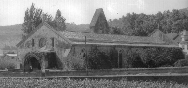 Parte superior do convento de Santa Clara-a-Velha. Cerca de 2/3 inferiores do convento encontram-se soterrados pelos aluviões do Mondego. Foto de HJCO, 17/9/1966.