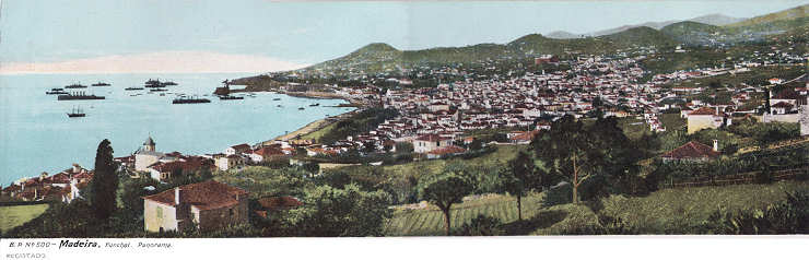 Postal panorâmico da Madeira (cerca de 1910) do coleccionador M. da Silva - Ver postais → ■■■