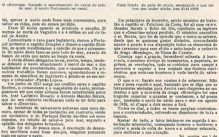 Mário Salgueiro, Como se salvou o Desertas, In "Ilustração Portuguesa", 2ª série, Nº 714, 27-10-1919, pág. 324