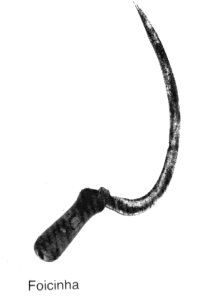 Foice que serve para abrir os portais, para além da função normal de cortar bajunça e ceifar as ervas dos muros, as quais, especialmente depois de secas, podem ser mais uma impureza a juntar a muitas outras contidas na água.