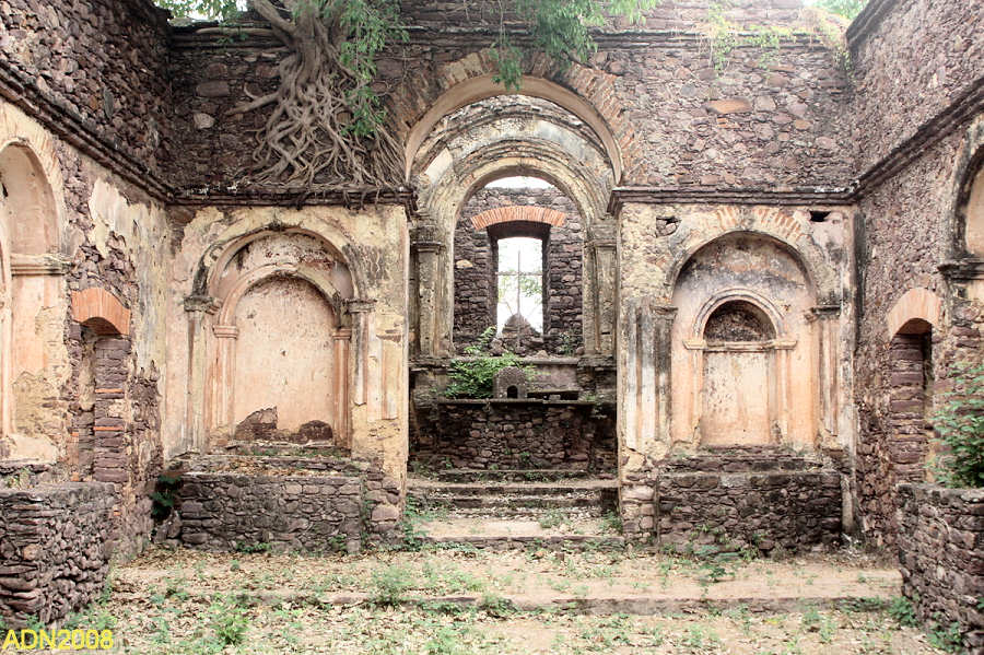 5 - Interior da igreja, em adiantado estado de degradação, vendo-se o altar ao fundo.