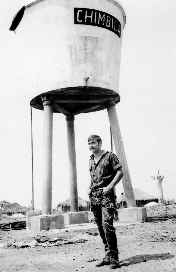 Depósito de água da povoação de Chimbila. Na imagem o autor da fotografia.