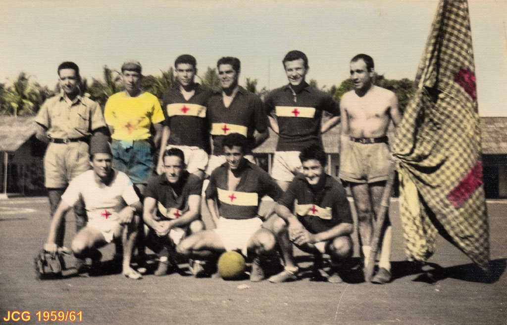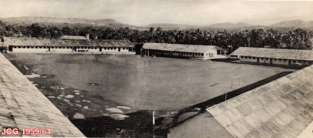 1. Quartel militar de Margão, vendo-se ao centro o campo de futebol.   2   3