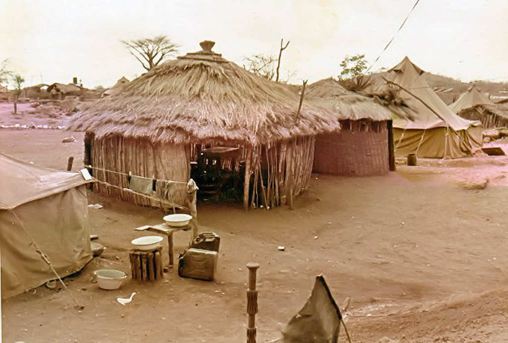 Jacinto Ramos provando o rancho na cozinha do destacamento da Companhia de Caçadores 4244.