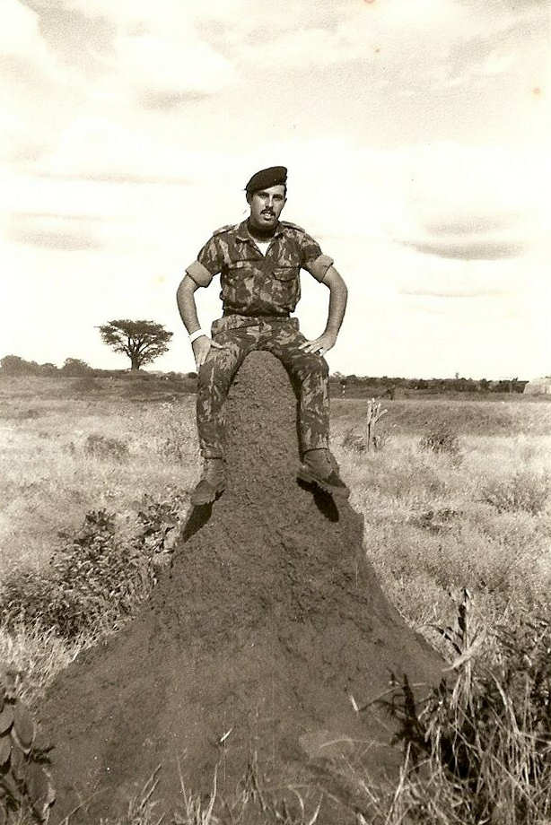 Jacinto Ramos sentado no cimo de um morro feito pelas formigas.