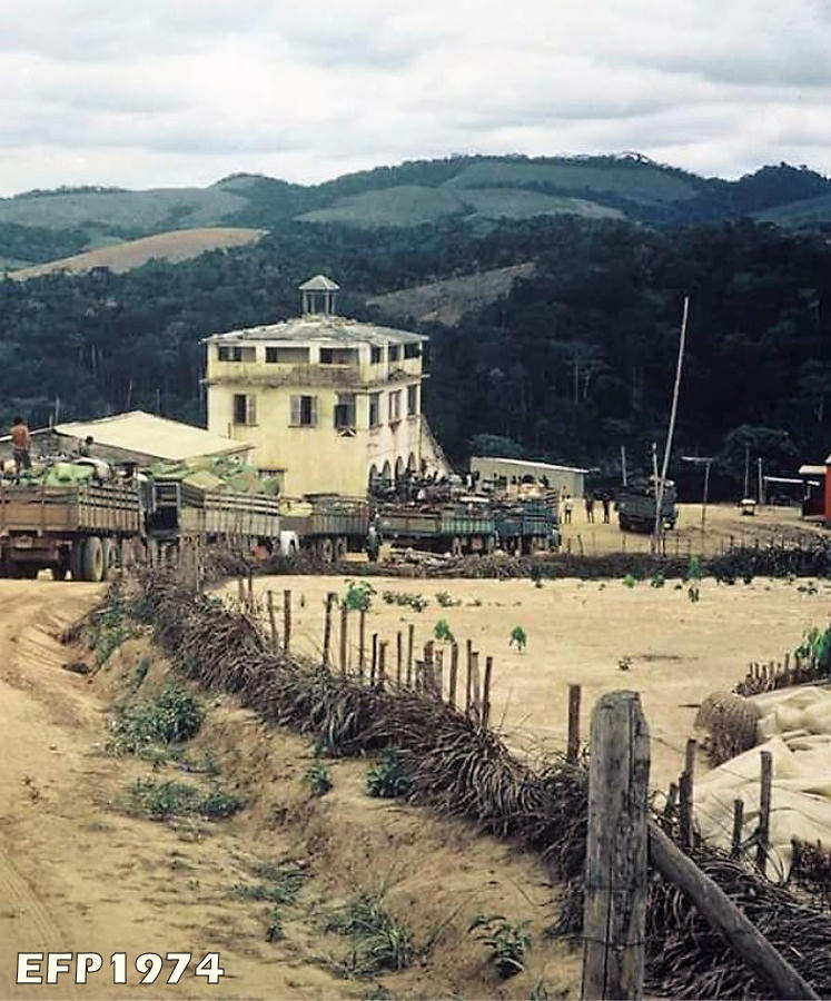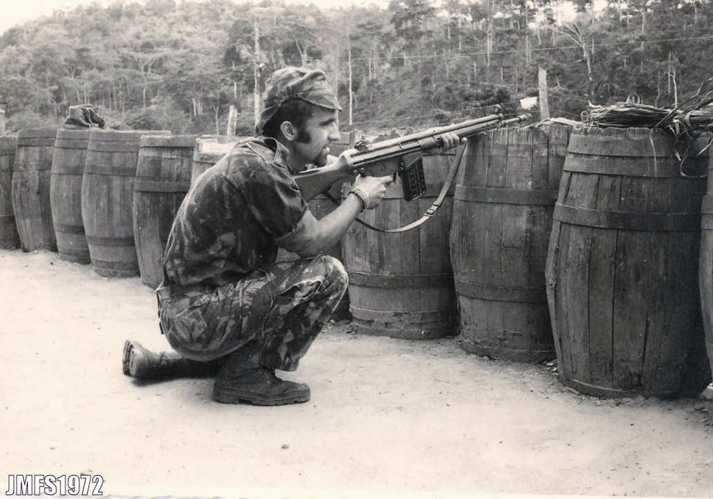 Junto dos cafeeiros em flor, uma recordação de Ernesto Ferreira Pena, pertencente à Companhia de Caçadores 104-74, a última companhia portuguesa que esteve na zona de Quipedro e que passou pela zona com o seu pelotão pelo Lué. Ernesto Ferreira Pena - 1974. Ficheiro: 62_Lue