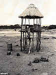 Acampamento de Fuzileiros Especiais n.º 7. Aldeia indígena, posto de vigia e rio Zambeze ao fundo.