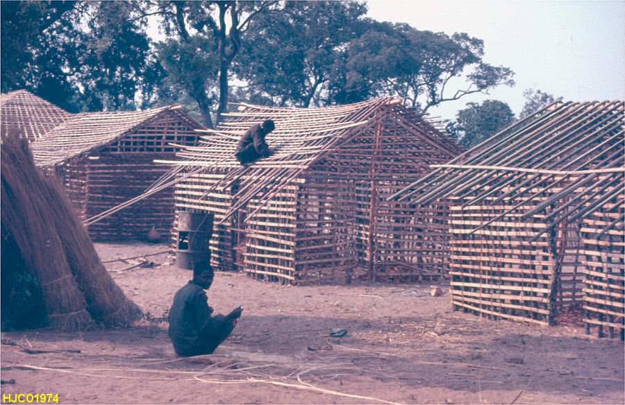 cubatas com colmo. Na extremidade da direita, o