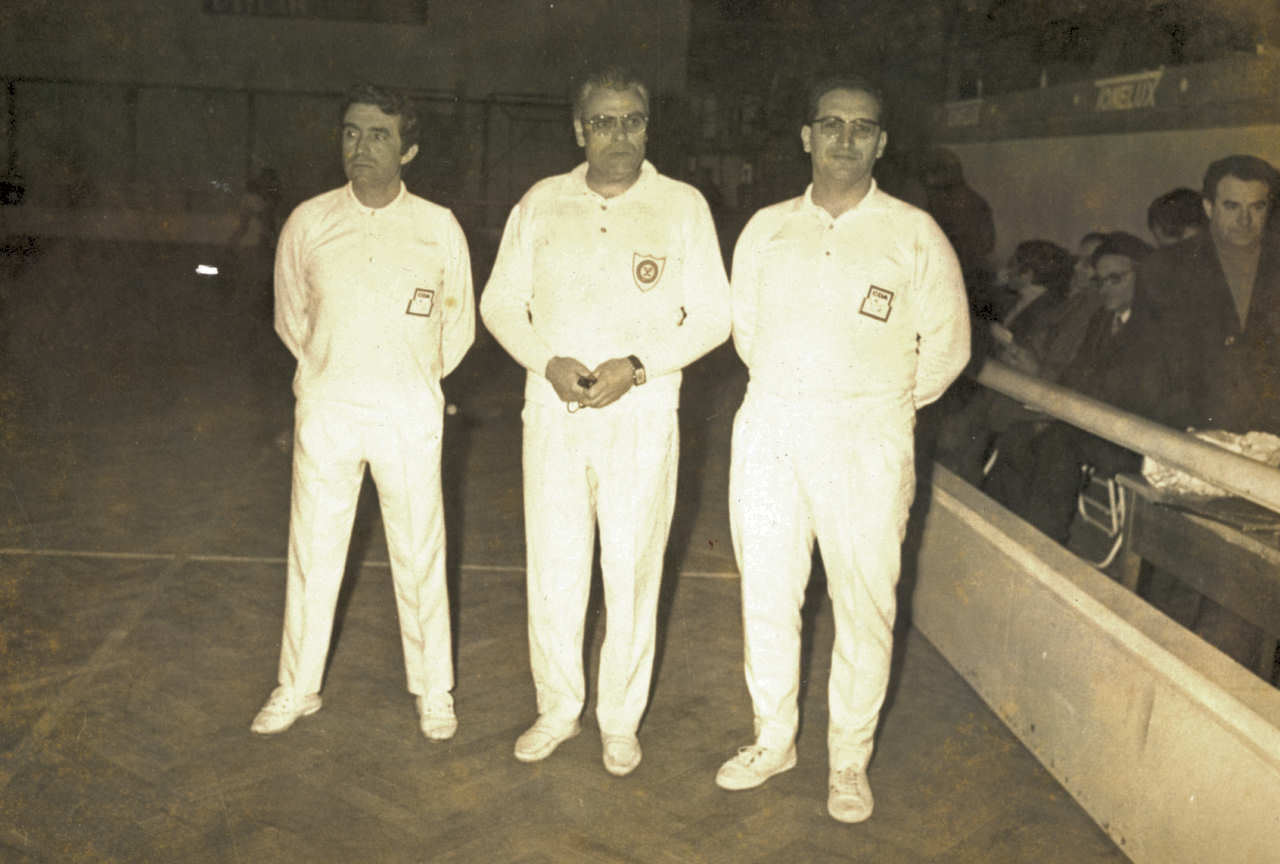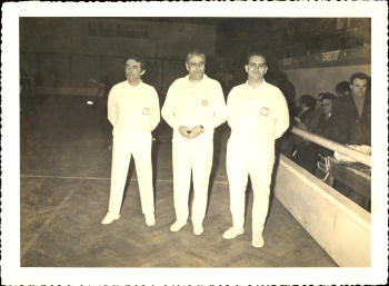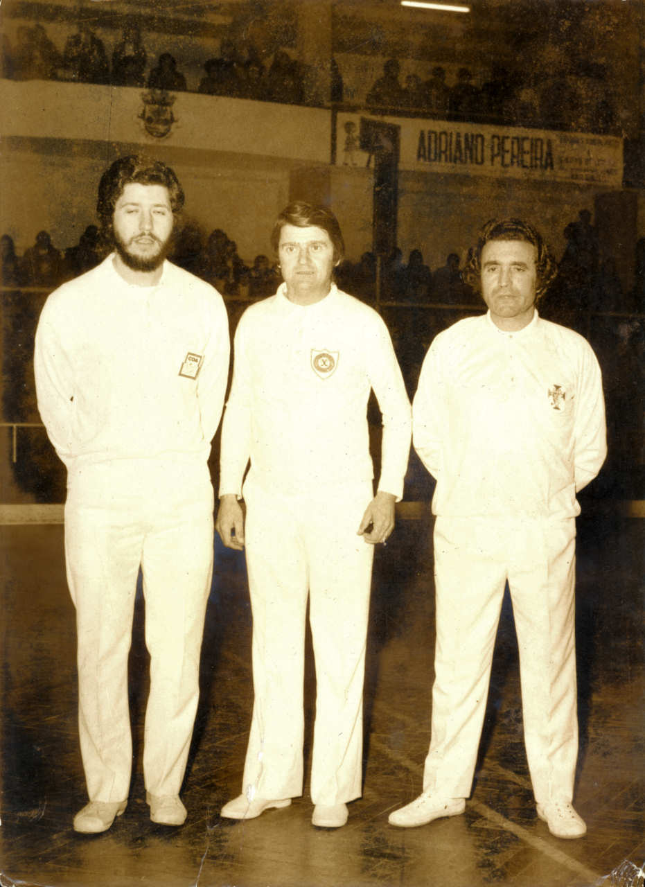 Durante um jogo na década de 1960. Da esquerda para a direita: Manuel Faria, ??? e Vitorino Gonçalves. Foto 18x24 cm.