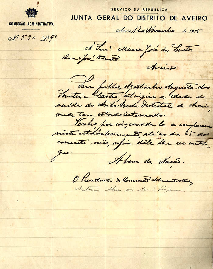 O jovem referido na carta, cuja mãe deverá vir buscá-lo ao Asilo-Escola por ter atingido a idade de sair, é o mesmo da imagem 1, reproduzida na secção de fotografias por datar.