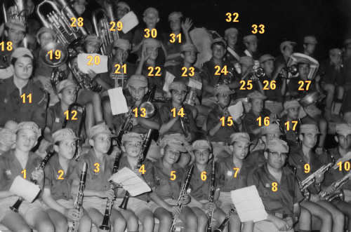 Foto 2 - 1.???;  2.???; 3.???; 4.???; 5.???; 6.???; 7.Firmino; 8.Maestro Severino; 9.Manuel Oliveira da Costa (Manelzito); 10.???; 11.???; 12.???; 13.???; 14.???; 15.???; 16.Amílcar; 17.???; 18.???; 19.???; 20.???; 21.Feliciano Neves; 22.???; 23.???; 24.???; 25.???; 26.???; 27.???; 28.???; 29.???; 30."Russo"?; 31.???; 32.???; 33.???.