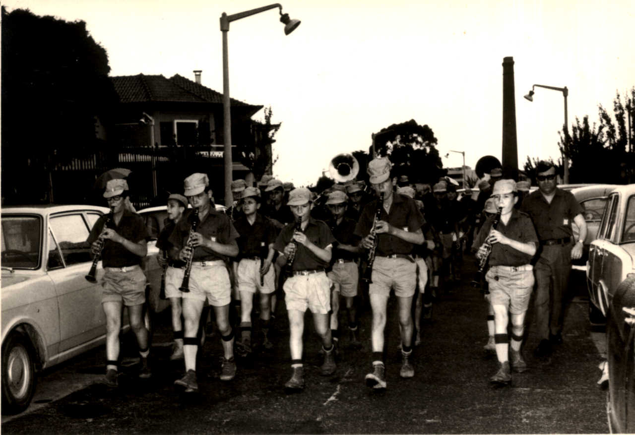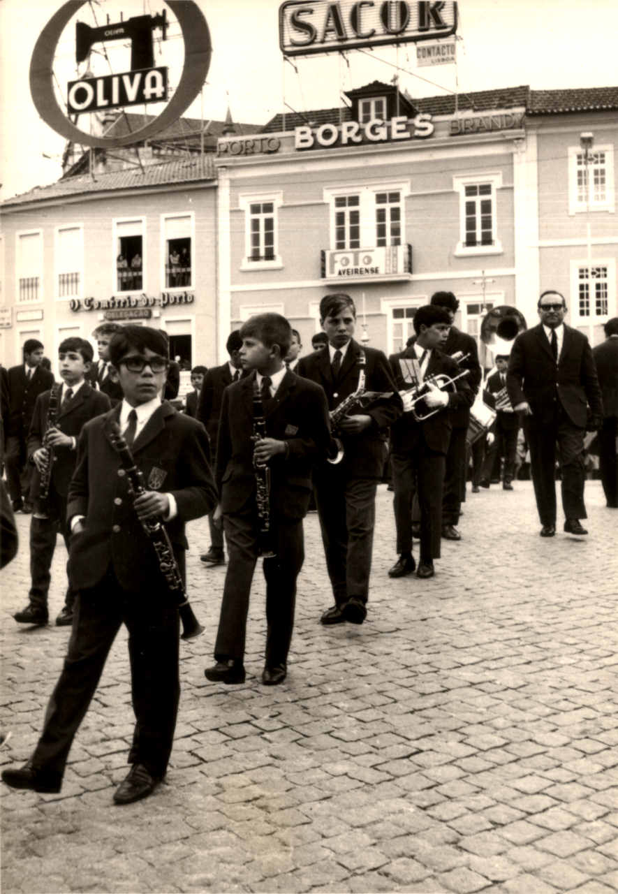 1 - Banda do Asilo-Escola entre 1966/68, nas escadarias da Igreja do Carmo. Maestro Severino Vieira. De acordo com Manuel Firmino, esta foto é de 1968.