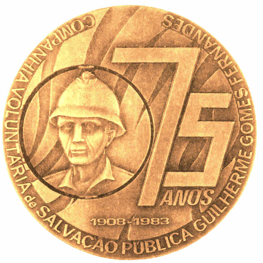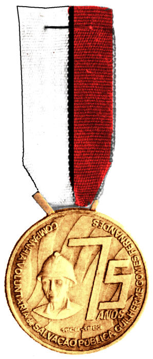 bombeiro alicerçado, ladeado, por setenta e cinco anos de